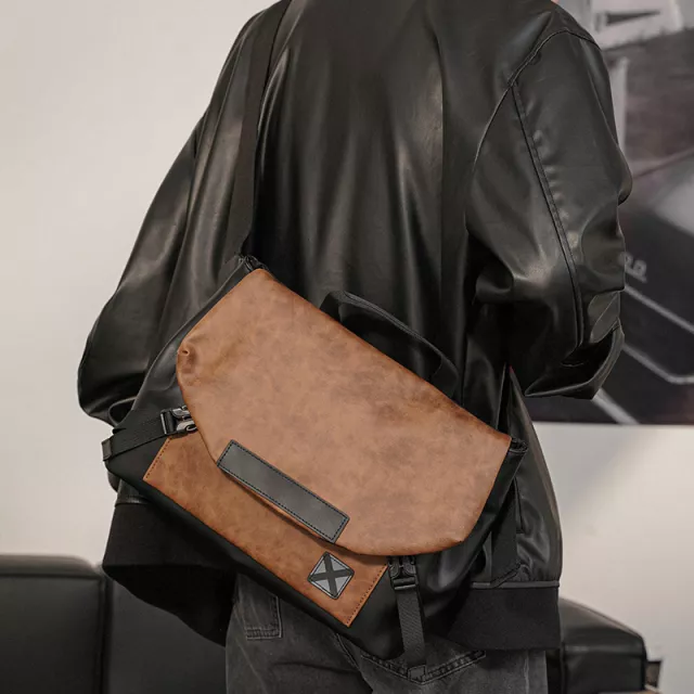 Casual Men’s Leather Messenger Crossbody Sling Bag – Lightweight & Large Capacity