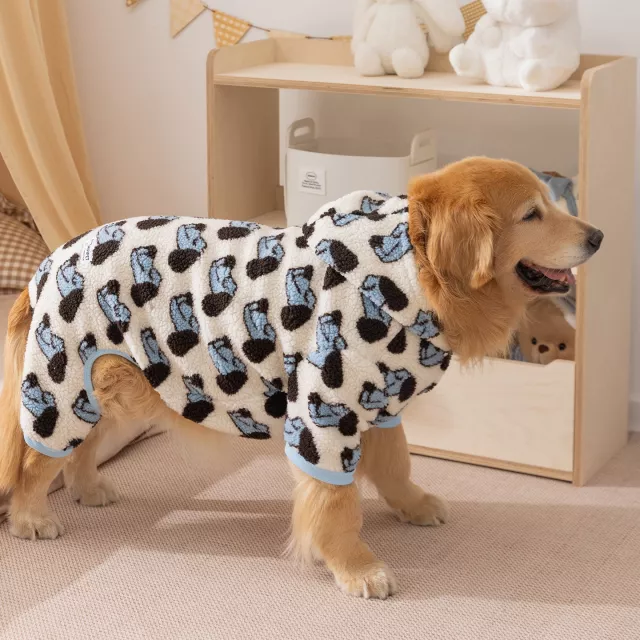 Make sure your furry friend stays warm, comfortable, and fashionable with this Large Dog Hooded Fleece Sweatshirt. Designed for big dogs such as Golden Retrievers, Labradors, and other large breeds, this fleece jumpsuit ensures they stay snug without compromising on style. Whether it’s a chilly day out or simply time for some indoor relaxation, this four-legged fleece suit has your dog covered.