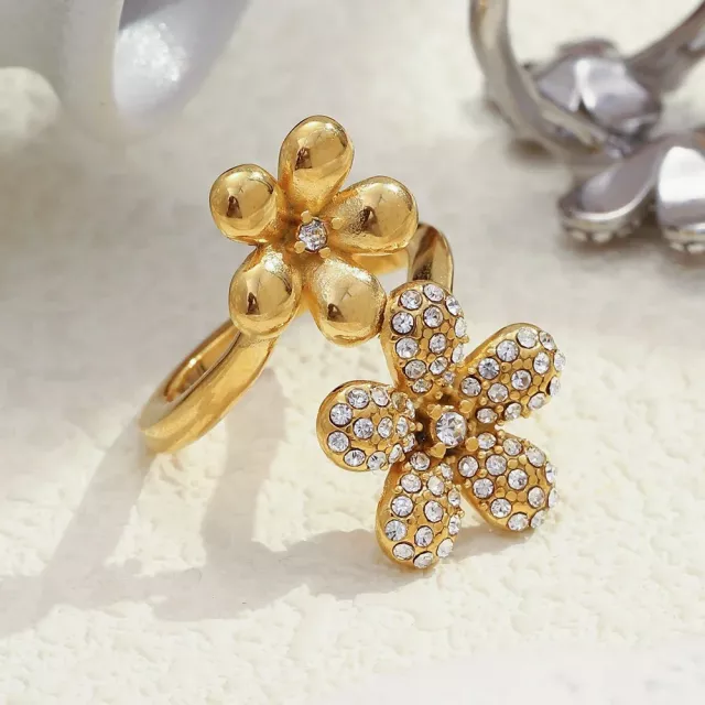 The combination of its stunning zircon inlays and the rich gold plating creates a truly eye-catching piece. The flower design evokes a sense of nature and beauty, while the stainless steel band ensures durability. This ring is not just a piece of jewelry; it’s a way to express your personal style in a sophisticated way.