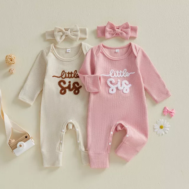 Dress your precious baby girl in this adorable and comfortable romper that combines style and practicality. Crafted with love and care, this Newborn Baby Girls Romper is designed to keep your little one cozy all day long. The soft, breathable fabric ensures comfort, while the cute letter embroidery adds a touch of charm to her spring wardrobe. Paired with a matching bow headband, this romper is perfect for any occasion, from family gatherings to casual outings.