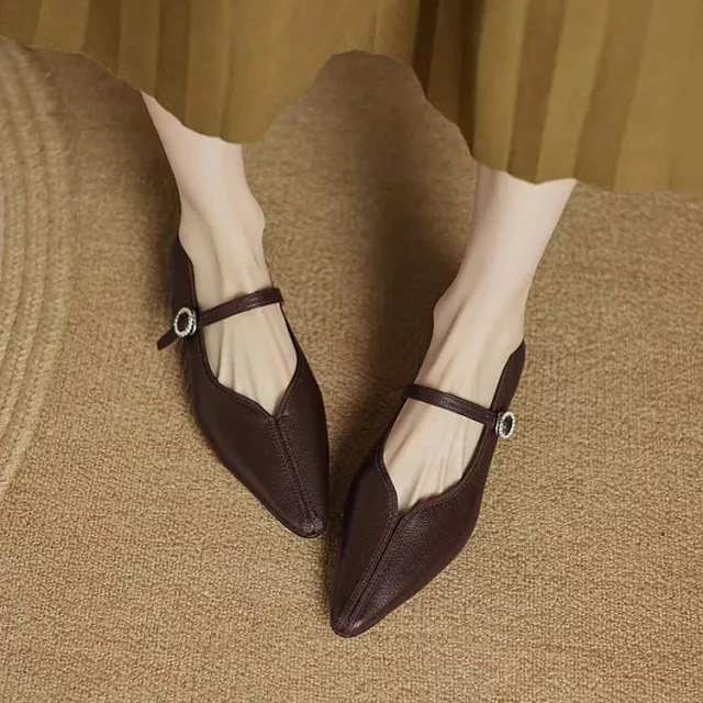 Step into style this season with these elegant and versatile Spring Women Pumps. Made from genuine leather, these pointed toe Mary Janes offer a chic look combined with comfortable wear, making them perfect for both casual outings and more dressed-up occasions. The low 1cm heel ensures a delicate lift without sacrificing comfort, while the shallow buckle strap adds a touch of sophistication and practicality.