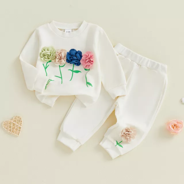 What makes this outfit so special is the attention to detail. The charming 3D flower design adds an extra element of fun and elegance, making it more than just an everyday outfit. The soft, stretchy fabric provides maximum comfort for your toddler, and the elastic waist pants are both practical and fashionable. It’s the perfect blend of style, comfort, and durability for your little one’s wardrobe.