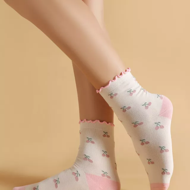 Refresh your sock drawer with a pair that feels as good as it looks. Slip on these cherry-pattern mid-calf socks and enjoy breathable comfort, reliable fit, and a touch of sweetness with every step. Treat your feet to everyday joy—because small details make a big difference.